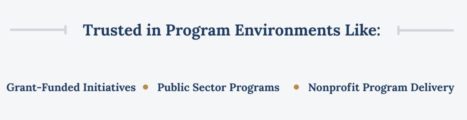 Supporting federal contractors, nonprofit organizations, and public sector initiatives managing program delivery